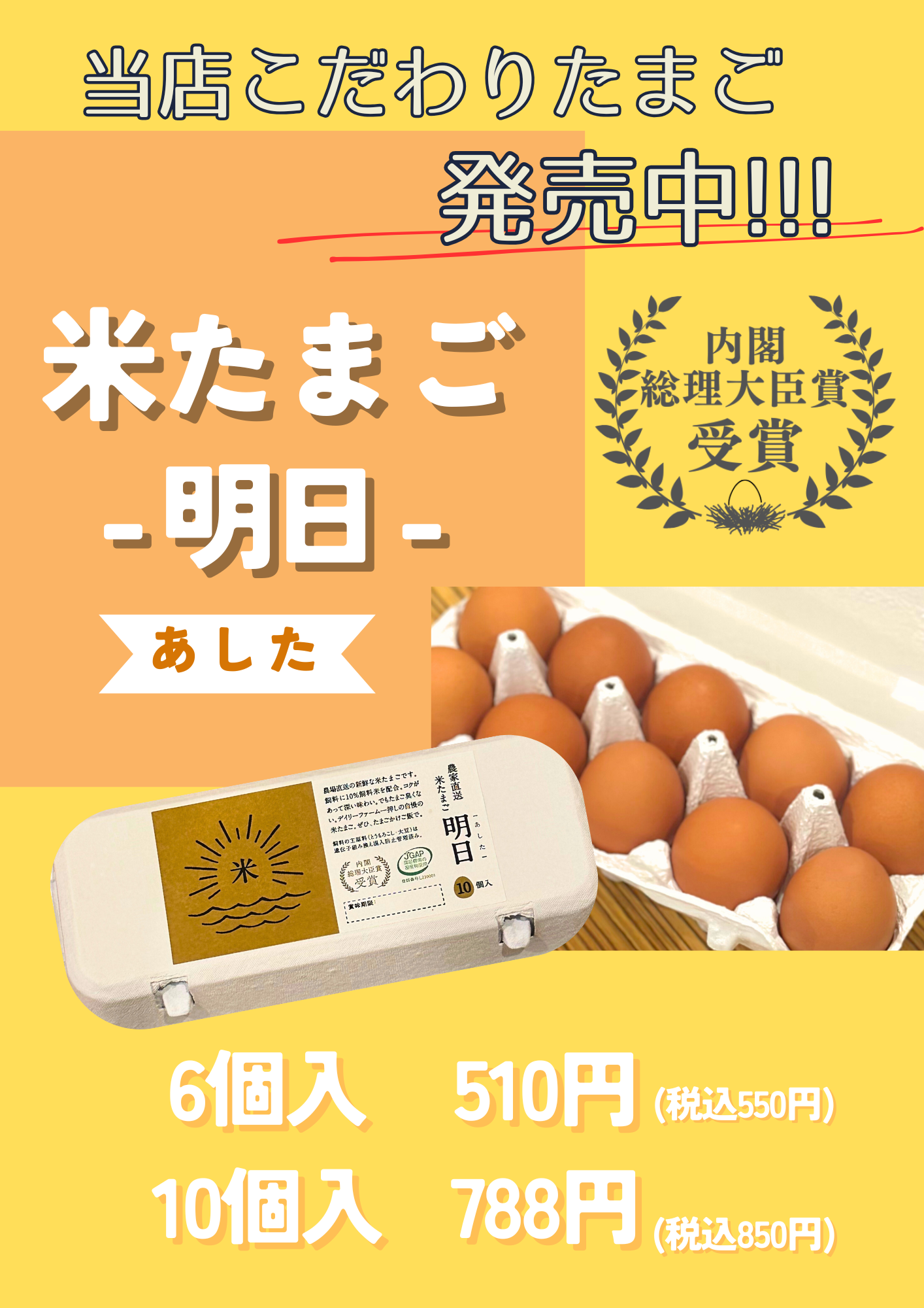 使用するのはもちろん、契約養鶏場直送の「米たまご‐明日‐」